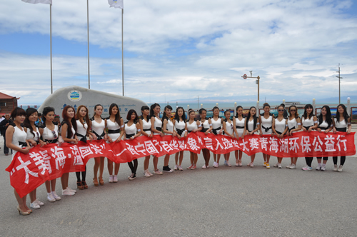 中午,一行到達(dá)青海湖畔。天高地闊的美景與靚麗的美女即刻構(gòu)筑成為一道精彩的風(fēng)景,隨行攝影師、攝像師即刻拿起機(jī)器留下許多難得的好畫面。接下來的環(huán)保實(shí)踐與環(huán)保意識(shí)推廣為眾多選手留下了深刻的印象,許多選手紛紛表示希望通過自己的行動(dòng)提高社會(huì)環(huán)保意識(shí),讓跟多人參與到保護(hù)青海湖環(huán)境中來。